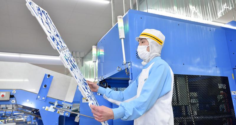 スーパーやコンビニなどで使用されているプラスチック製 食品トレー容器 国内シェアNo.1の企業です。年間約250 億枚以上の食品トレーを生産しており、国内で流通している3 枚に1 枚は「エフピコ」の製品です。食生活になくてはならない必需品なので、順調に業績を伸ばし、全国に拠点を展開しています。そのエフピコグループの最新拠点となる『関西工場・関西ハブセンター』が、2023 年3月に兵庫県小野市で稼働を開始しました。