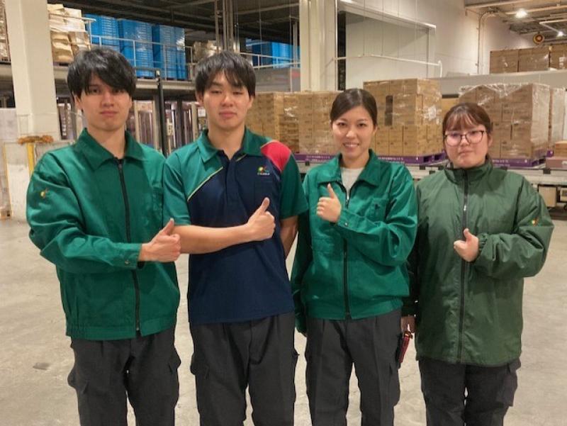 コープ商品の補充発注を行う「発注・在庫管理業務」、倉庫で商品を入庫・保管・出庫する「在庫保管業務」、店舗・宅配センター向けに仕分けする「集品仕分け業務」、納品先にお届けする「輸配送業務」を、常温・冷蔵・冷凍の温度帯で行っています。